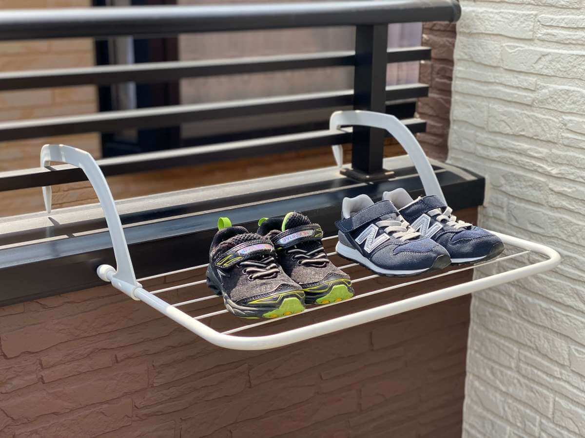 わが家は小学生の息子が2人いるのですが、週末の上履き&スニーカー洗濯もこれでスッキリ干せるようになりました。