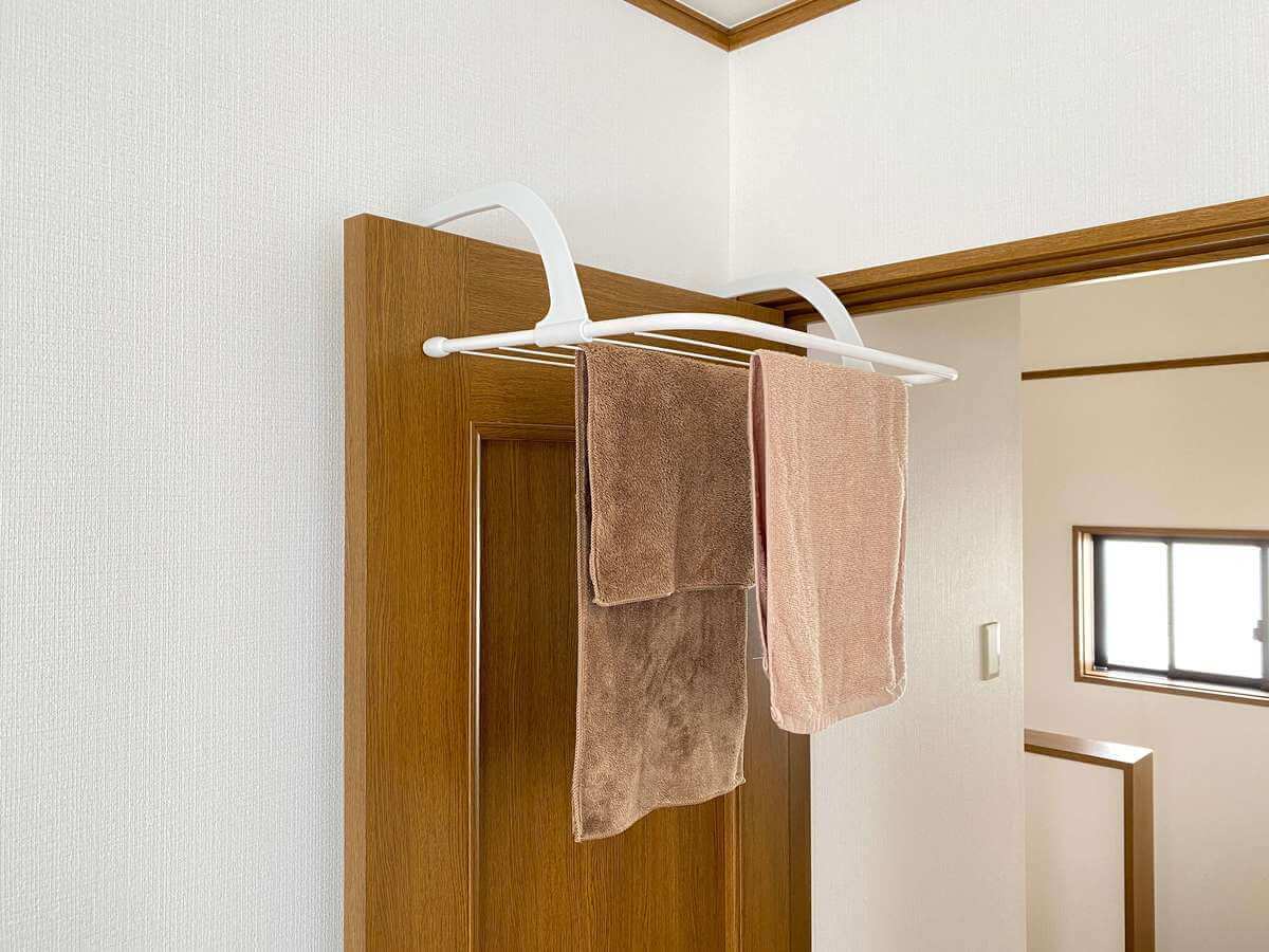 家族の人数が多いと洗う頻度が爆上がりするタオル。干しきれなくて困ることもありますよね。そんな時にも引っ掛けラックが大活躍♪