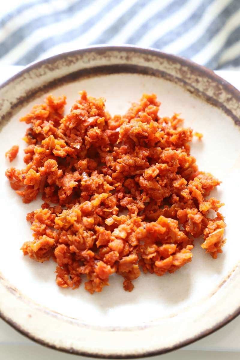- 耐熱皿に入れ、チーズをのせ、オーブントースターで焦げ目がつくまで焼く。