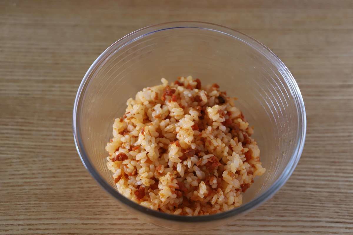 確かに、温かいご飯によく混ぜるだけで、オムライスのごはんになりました。