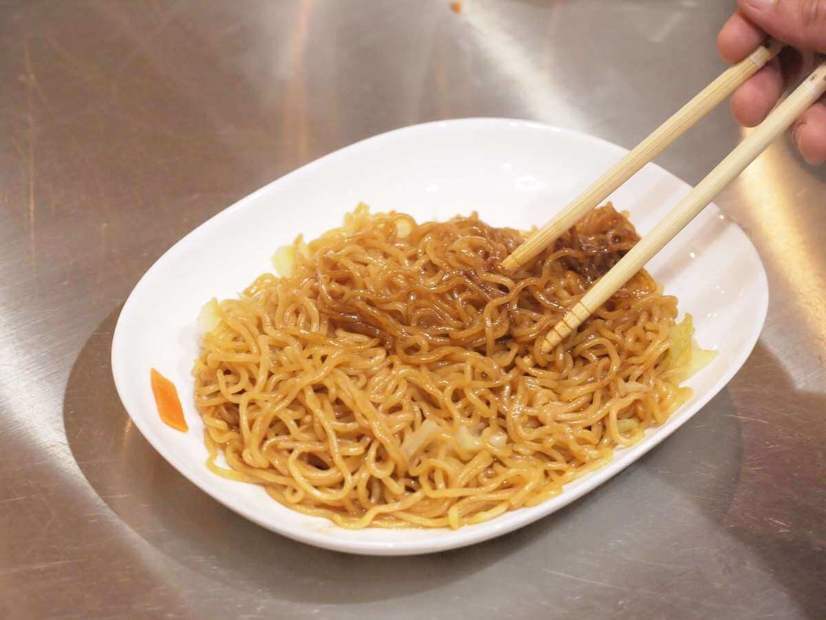 見た目は普通の焼きそばとあまり変わりませんが...よく見ると外側が少し固まっています。