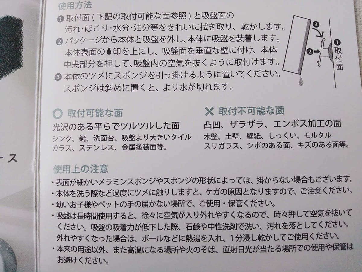 ラックとは違い、スポンジホルダーは「引っ掛けて」収納するアイテムです。置き場所を取らず、見た目がスッキリするのが長所。