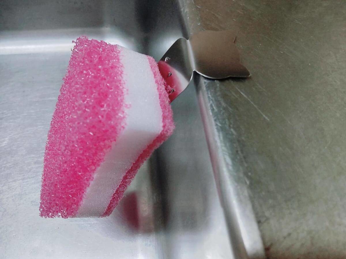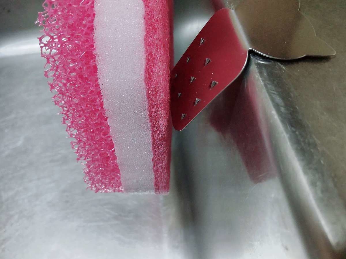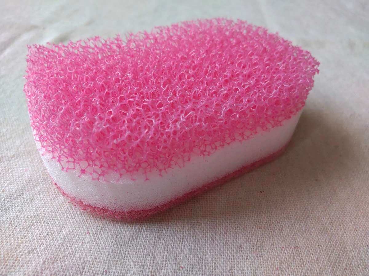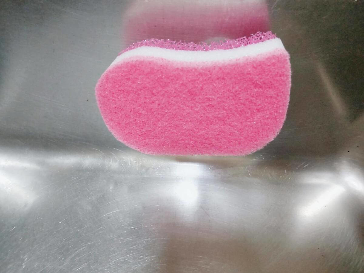 普段使用しているのは、目の粗いウレタンスポンジと汚れ落ちのよいナイロン不織布が貼りあわされたこのスポンジ。