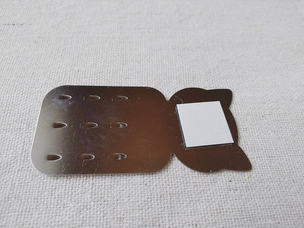 裏には貼り付け用の両面テープがついています。新築のキッチンだとテープ跡が気になるかも……。