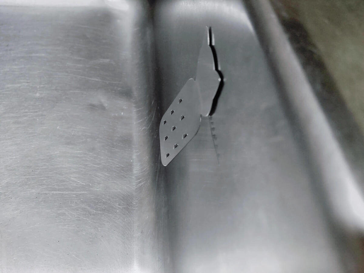 角度がついているためスポンジを引っ掛けると斜めになり、しっかりと水が切れる仕組みです。