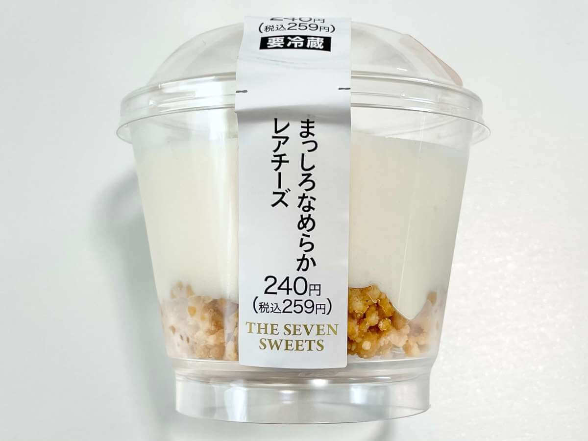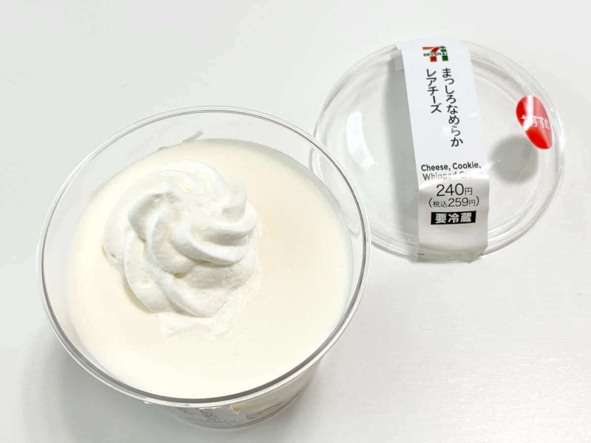 セブンイレブンで購入できる「まっしろなめらかレアチーズ」をご紹介しました。