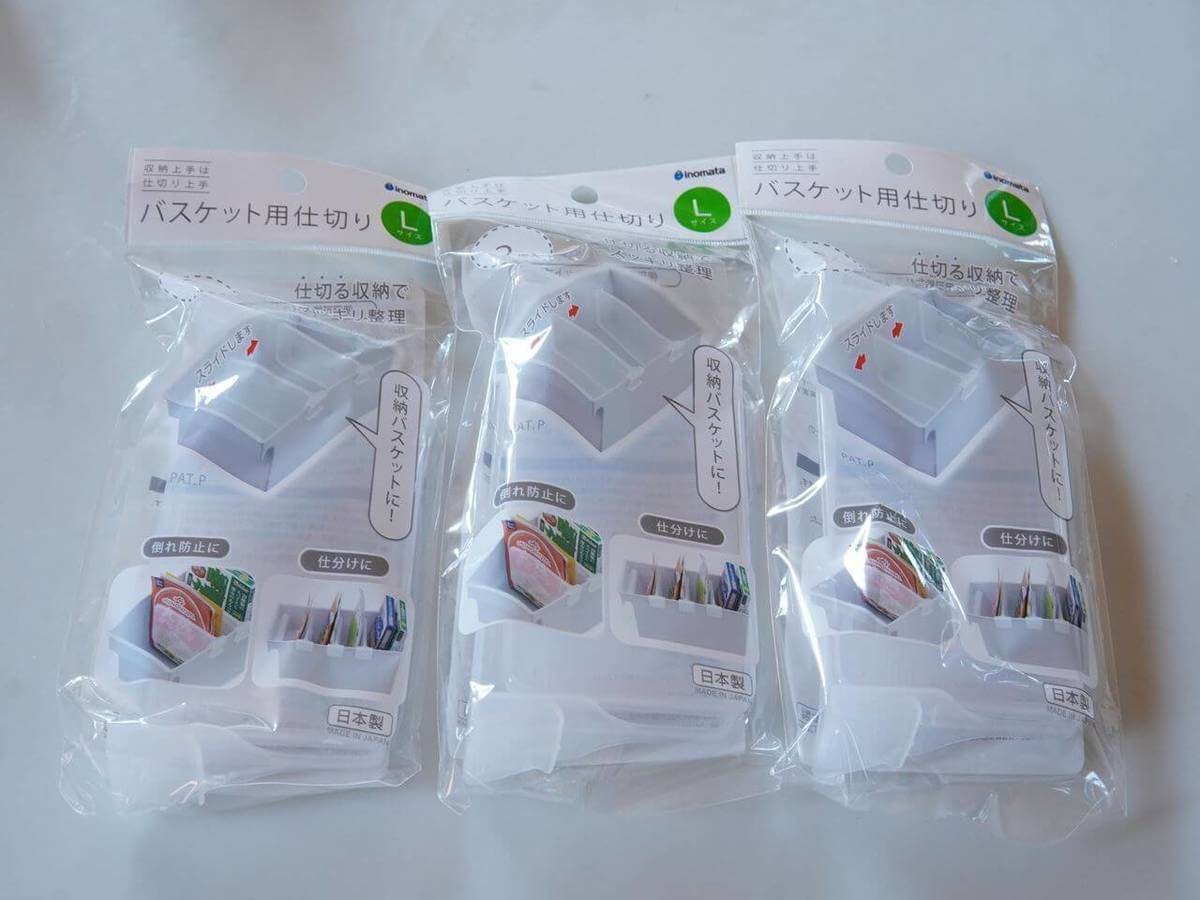 収納の改善に最も役に立ったのが、100均でみつけた「バスケット用仕切り」です。
