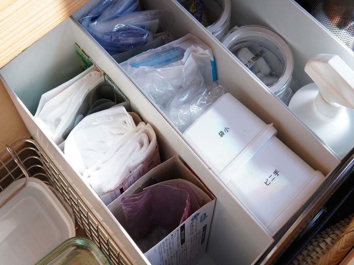その他、レジ袋有料化に伴い、キッチンで使うポリ袋やフリーザーバッグなどの保管も必要になりました。