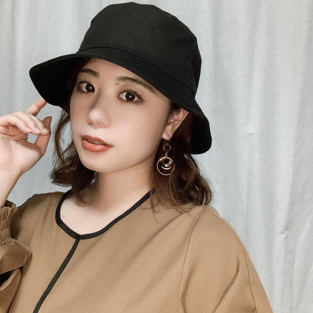 コーデ全体のスパイスにもなってくれる、ブラックカラーのバケットハット。