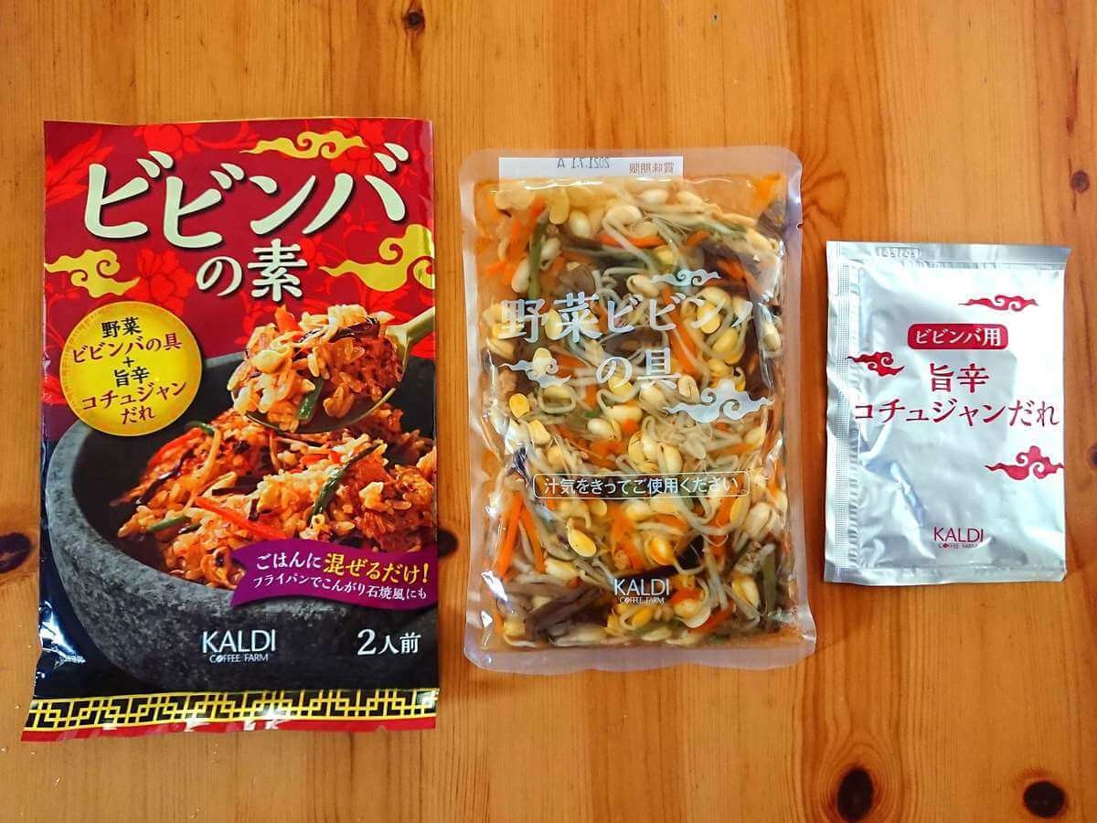ごはんに混ぜるだけの、カルディオリジナルの旨辛だれの野菜ビビンバです。