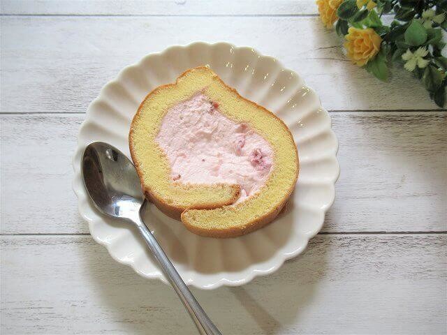 お皿に出して、サイズを計ってみると直径で約8.5㎝ほど。見た目からは一般的なロールケーキよりも少し小さい印象です。