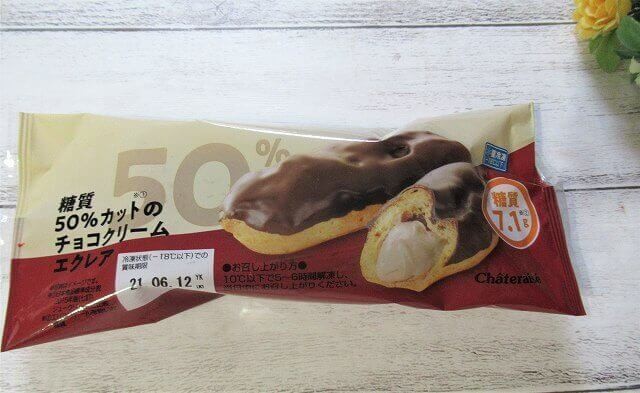 糖質50%カットのチョコクリームエクレアの解凍時間は、10℃以下で5~6時間。朝のうちに冷蔵庫に移動しておくと、おやつ時間には食べられます。