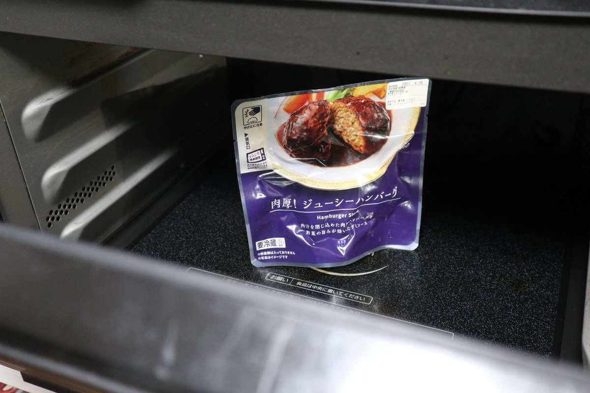 ハンバーグは電子レンジで2分加熱。