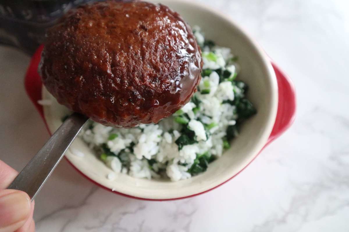 ごはんがデミグラスソースや肉汁を吸って絶品ですよ。