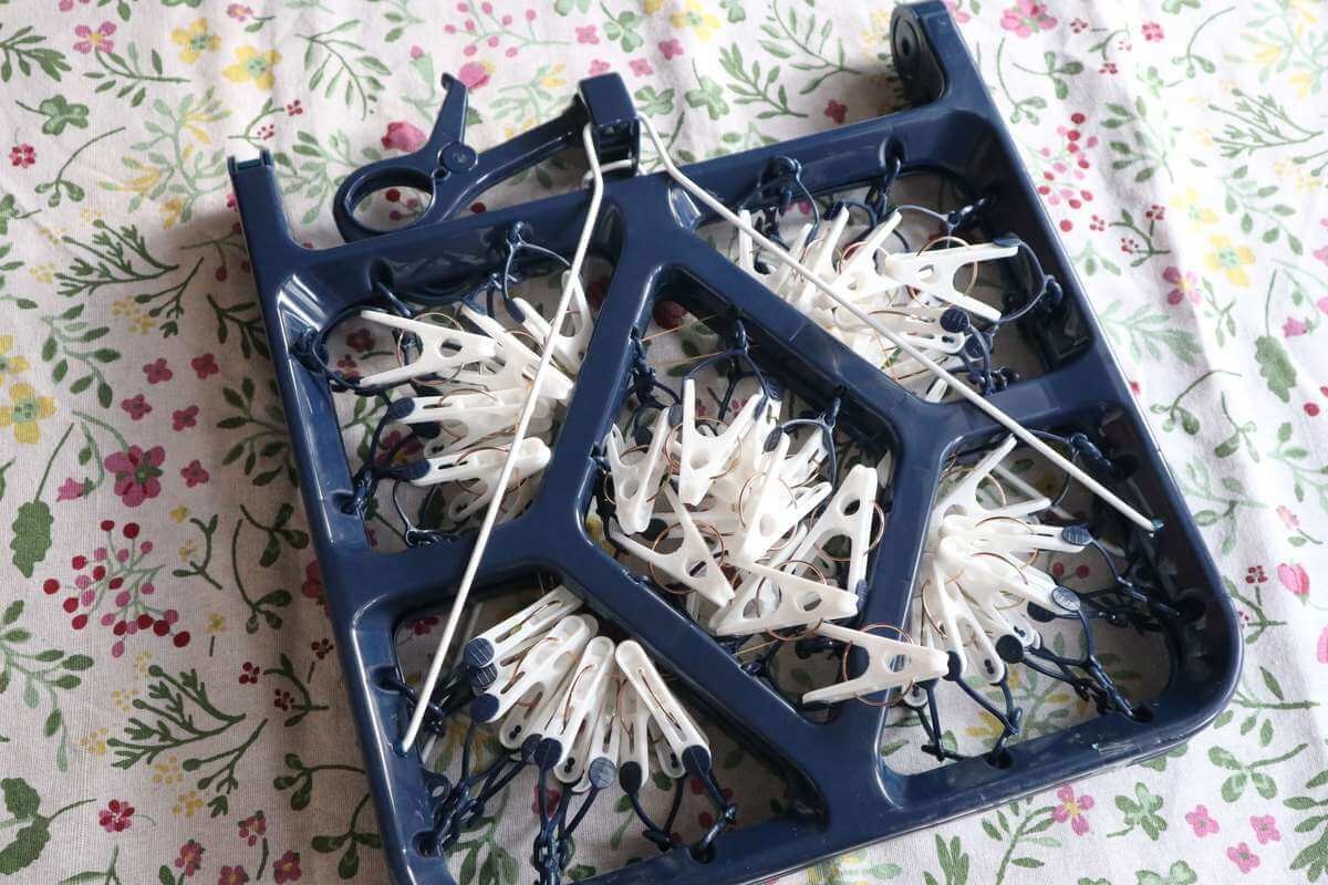 ダイソー《洗濯ピンチつきハンガー》52ピンチ。550円。