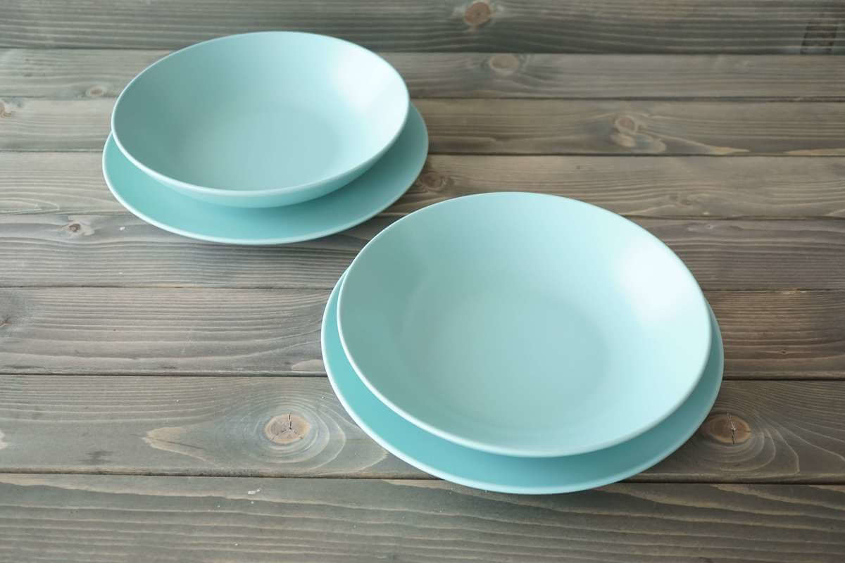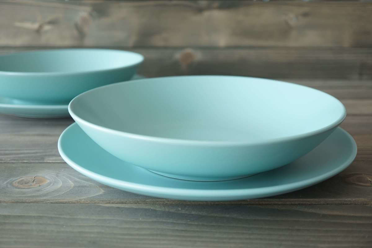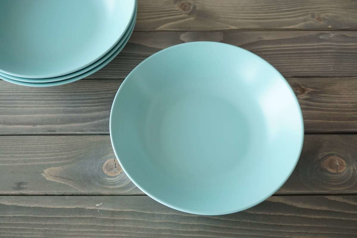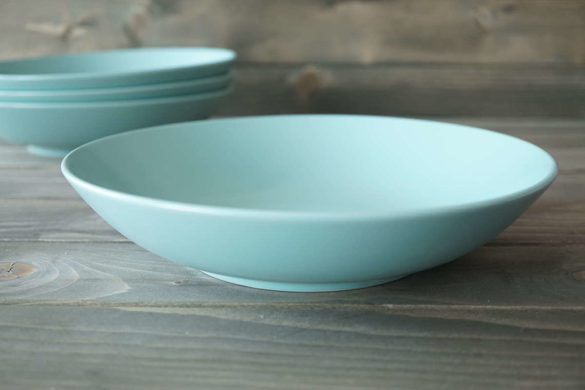こちらは新商品の食器で、マットな仕上がりの「ライトターコイズ」カラーです。