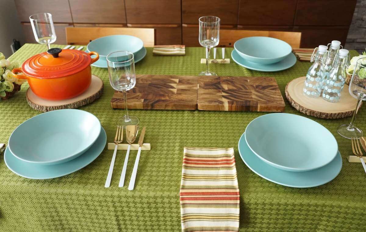 グリーンやピンクのテーブルクロスに合わせると春らしく、ブルーや水色に合わせると夏らしい雰囲気が楽しめます。