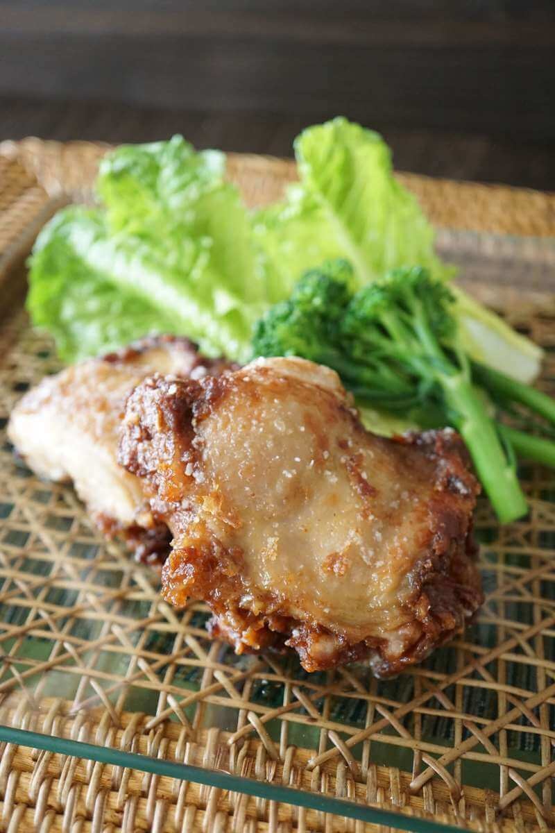 今回はハサミを使い鶏もも肉のスジをカットして揚げただけなので、厚みのあるフライドチキンになりました。