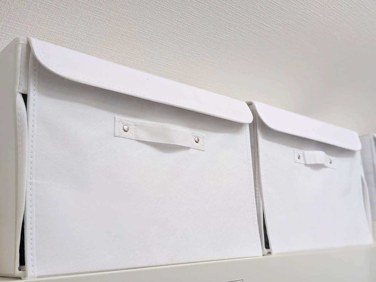 以前は柄入りの収納ボックスを使っていましたが、白無地にしたらクローゼットが見違えるほどすっきりしました。