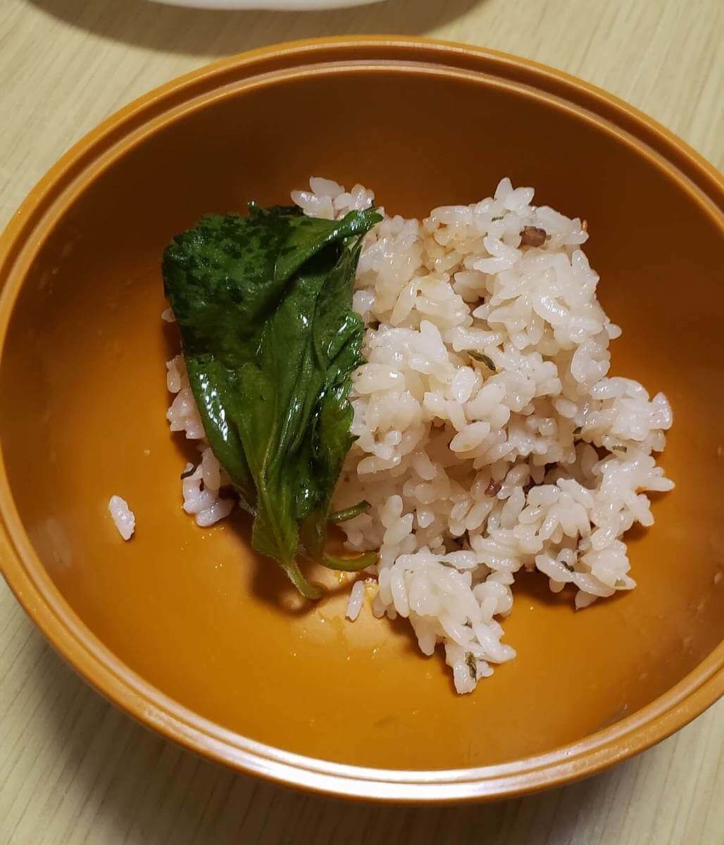 私は晩御飯だけで、「無限青じそ」をせんべい汁と炊き込みご飯と、カップ焼きそばに入れました。1食で10枚は食べました。