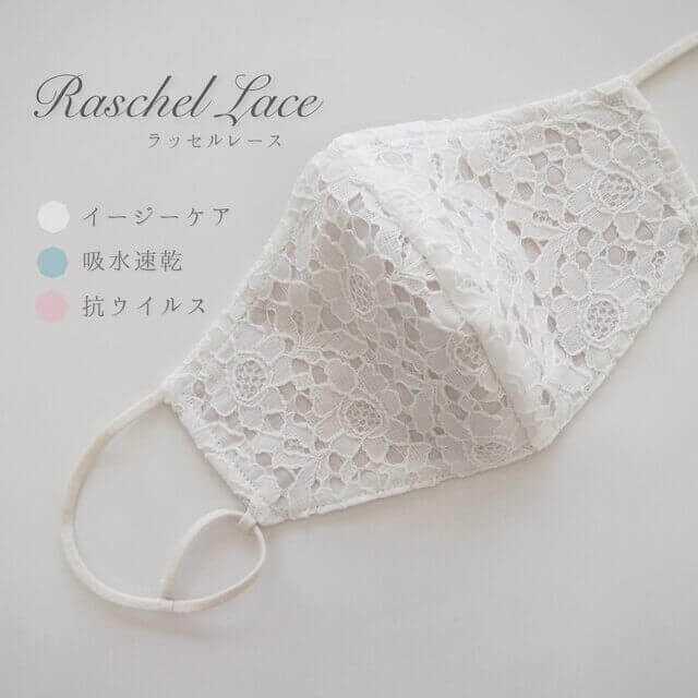 上品なレースのマスクは、清潔感と清楚な雰囲気が手に入るアイテム。抗ウイルス加工を施した特殊な布でありながら、付けるとサラッとしているので、蒸れやすいこれからの時期にピッタリの立体マスクです。