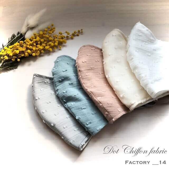 シフォンのような素材感がより上品な印象がゲットできちゃいますよ。こちらのマスクは、コットン100%の2重構造になっています。お洋服とマスクをリンクさせることでおしゃれ見えしちゃいます!