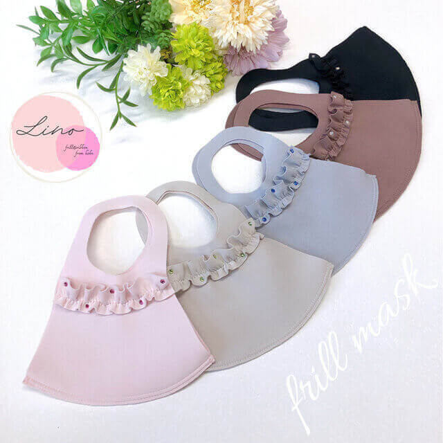 思わず「どこで買ったの?」と言われちゃいそうな、フリル付き立体マスクです。フリル部分に誕生石を付けてくれるので、他と被りにくくさらにおしゃれなデザインが特徴です。