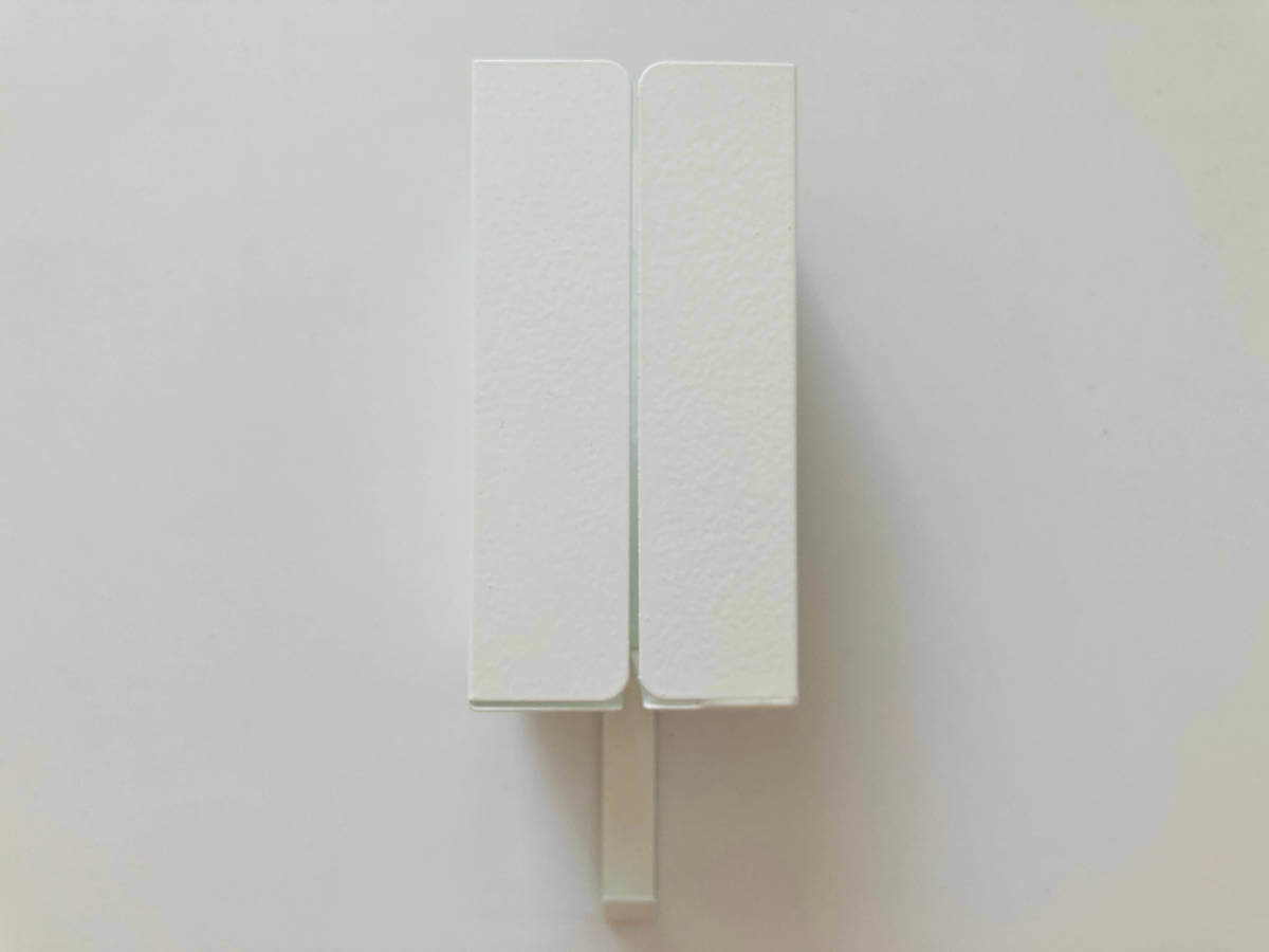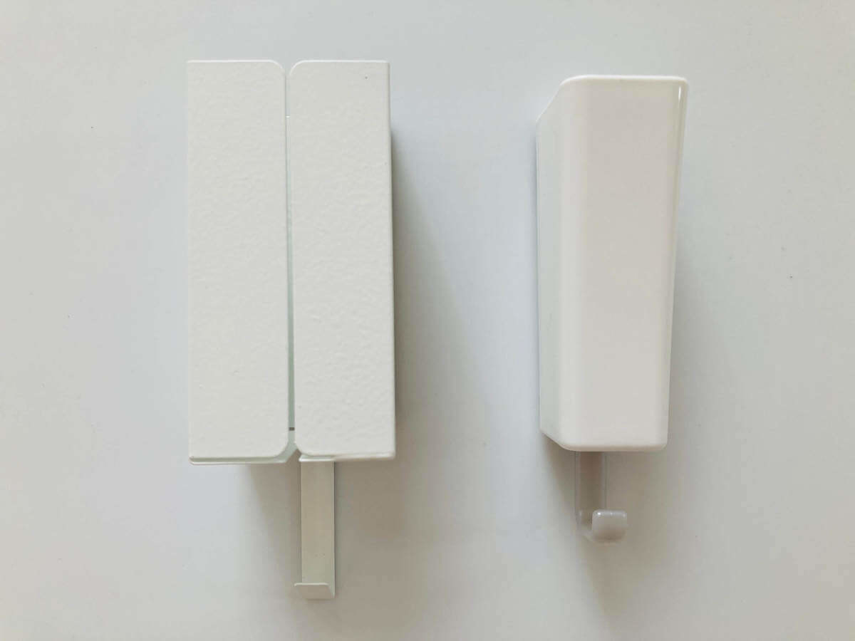 裏側のマグネットを、冷蔵庫などの磁石が付くところに取り付けて使います。カラー展開はホワイトとブラック。