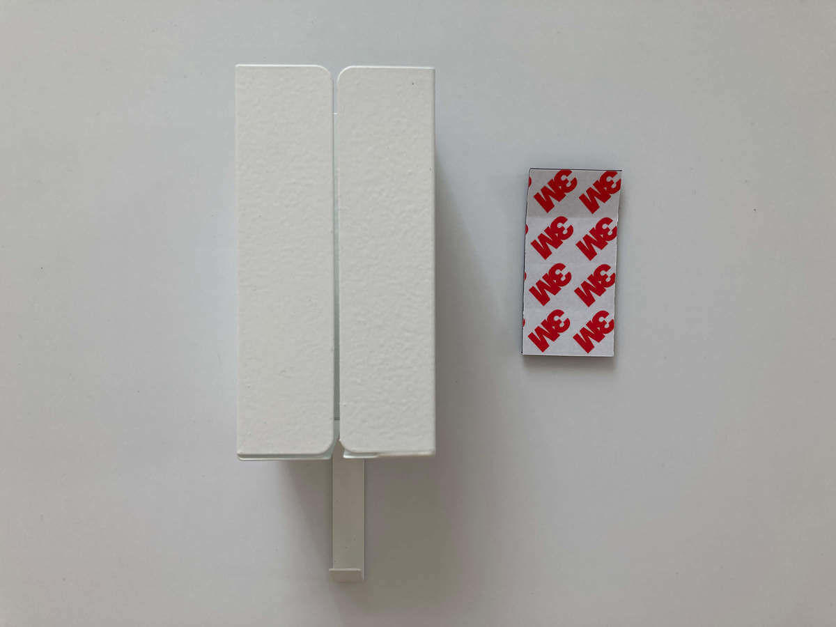 パッケージの中には3M製のマグネットが付属しています。片方が両面テープになっていて、4つにカットされていました。貼り付けたい面の四隅に付けてくださいね。