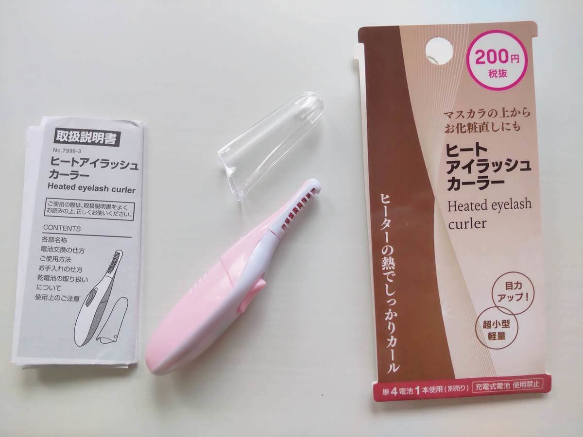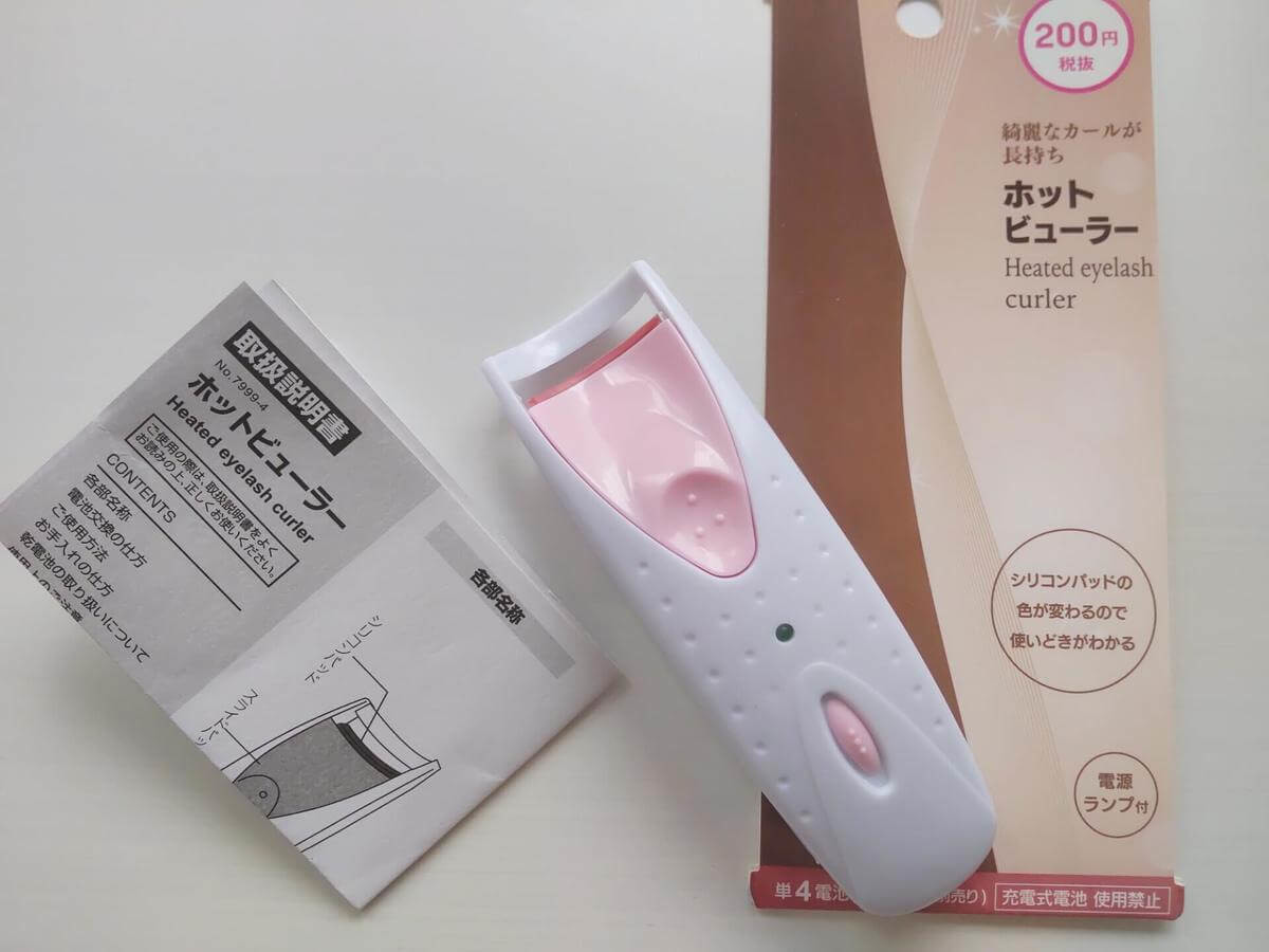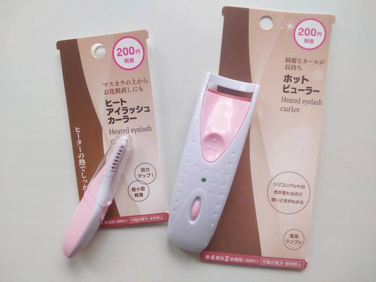 目元をパッチリさせるのに役立つのが、ホットビューラー。熱の力で通常のビューラーよりもカール力やキープ力が高いのが特長で、ダイソーでは2種類の商品が販売されていました。