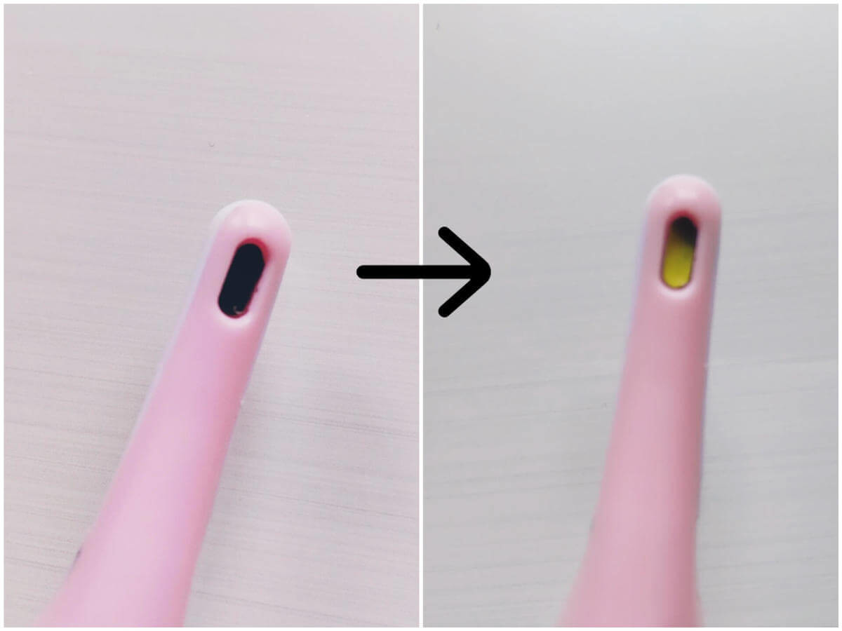 ピンク色のシリコンパッドが透明に変わったら使用OKのサインです。