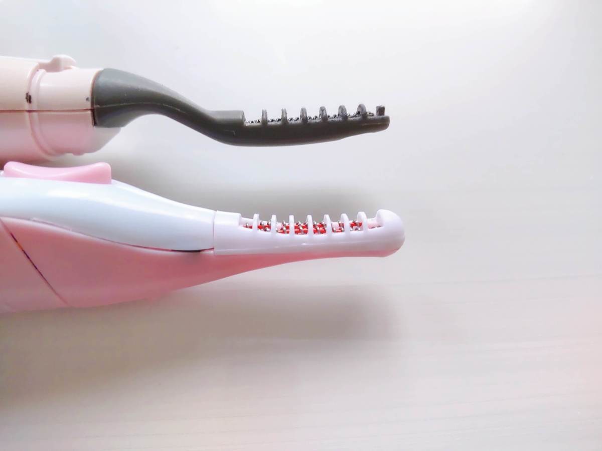 パナソニックの「まつげくるん」(写真上)も、同じコームタイプの商品です。並べると大きさが結構違いますよね。