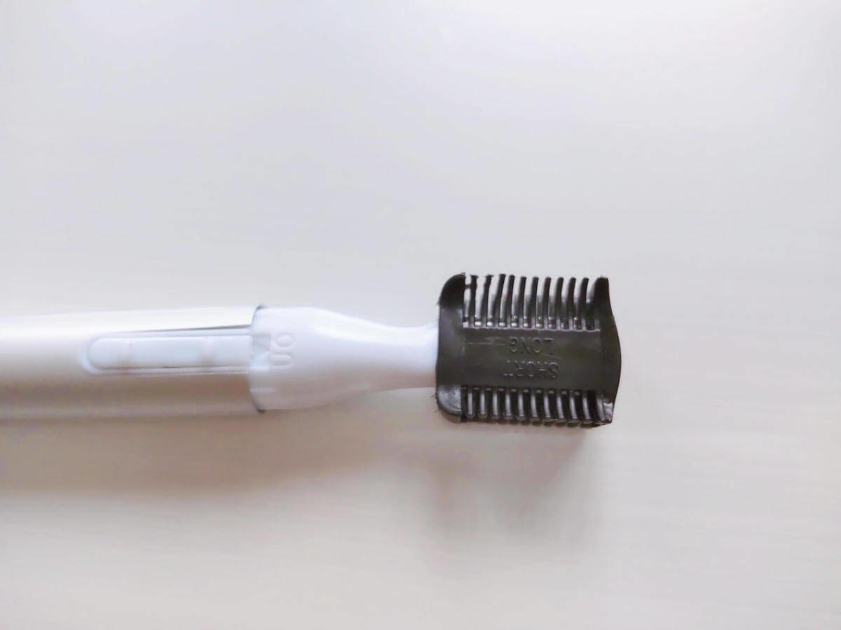 まゆ毛コームは、シェーバーにセットすると2mmと4mmの長さにカットできる、というもの。