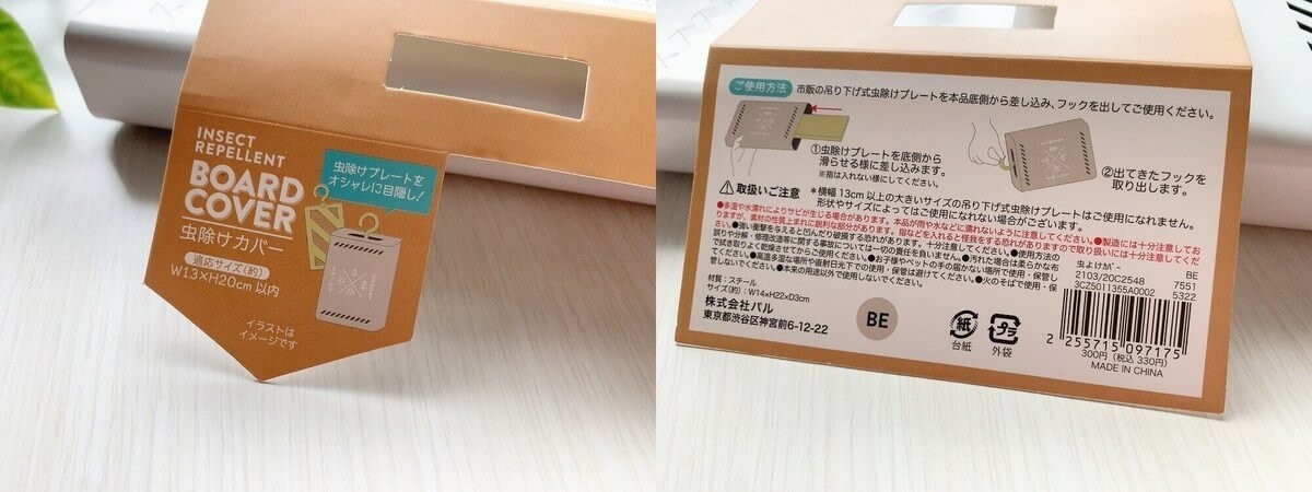 3COINSのこちらの虫除けカバーは、幅13cm高さ20cm、そして厚みは3cm(約)です。高さは多少はみ出しても使えますが、せっかくのおしゃれアイテムが台無し。幅や厚みはこれ以上だと使えませんので要注意です。