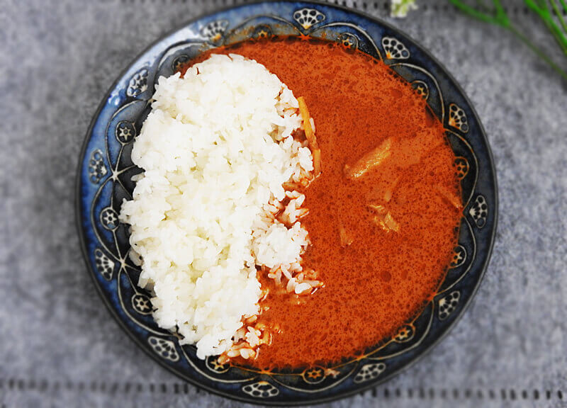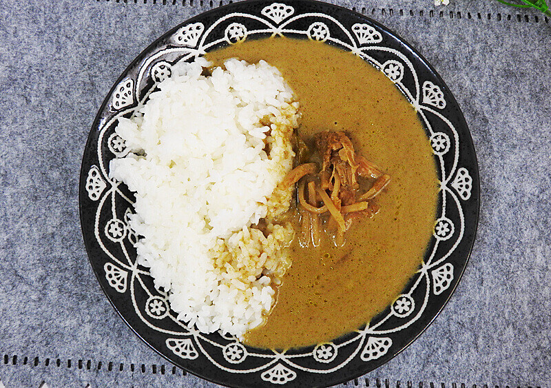 端的に言うと「思ったよりも辛くない」と思いました。レトルトカレーで例えると、中辛~辛口の間でしょうか。ココナッツミルクが入っているからか、マイルドさも感じましたよ。
