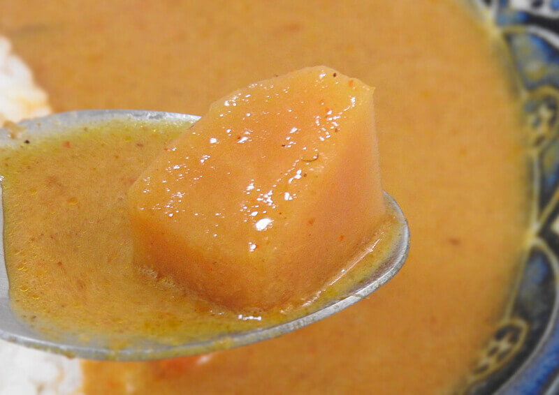パッケージ写真ほどではありませんでしたが、にんじん・じゃがいも・鶏肉と形のある具材がしっかりと入っていました。