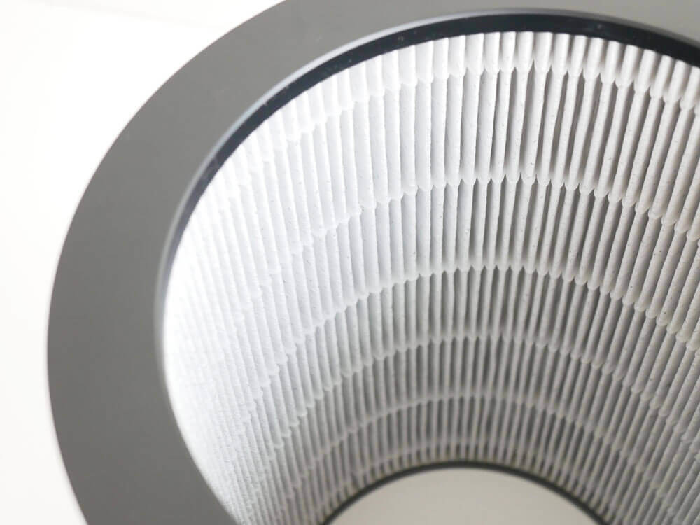 この円筒の形が実は、空気の効率の良い吸引を考えてたどり着いた形で、360°全面から空気を吸い込む構造はフィルターの機能を最大限に引き出してくれます。
