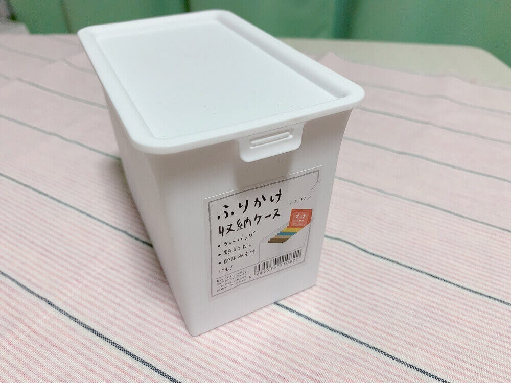 続いて紹介するのは「フタ付きふりかけ収納ケース」。収納部分のサイズは【幅7.4cm高さ10cm奥行12.5cm(約)】