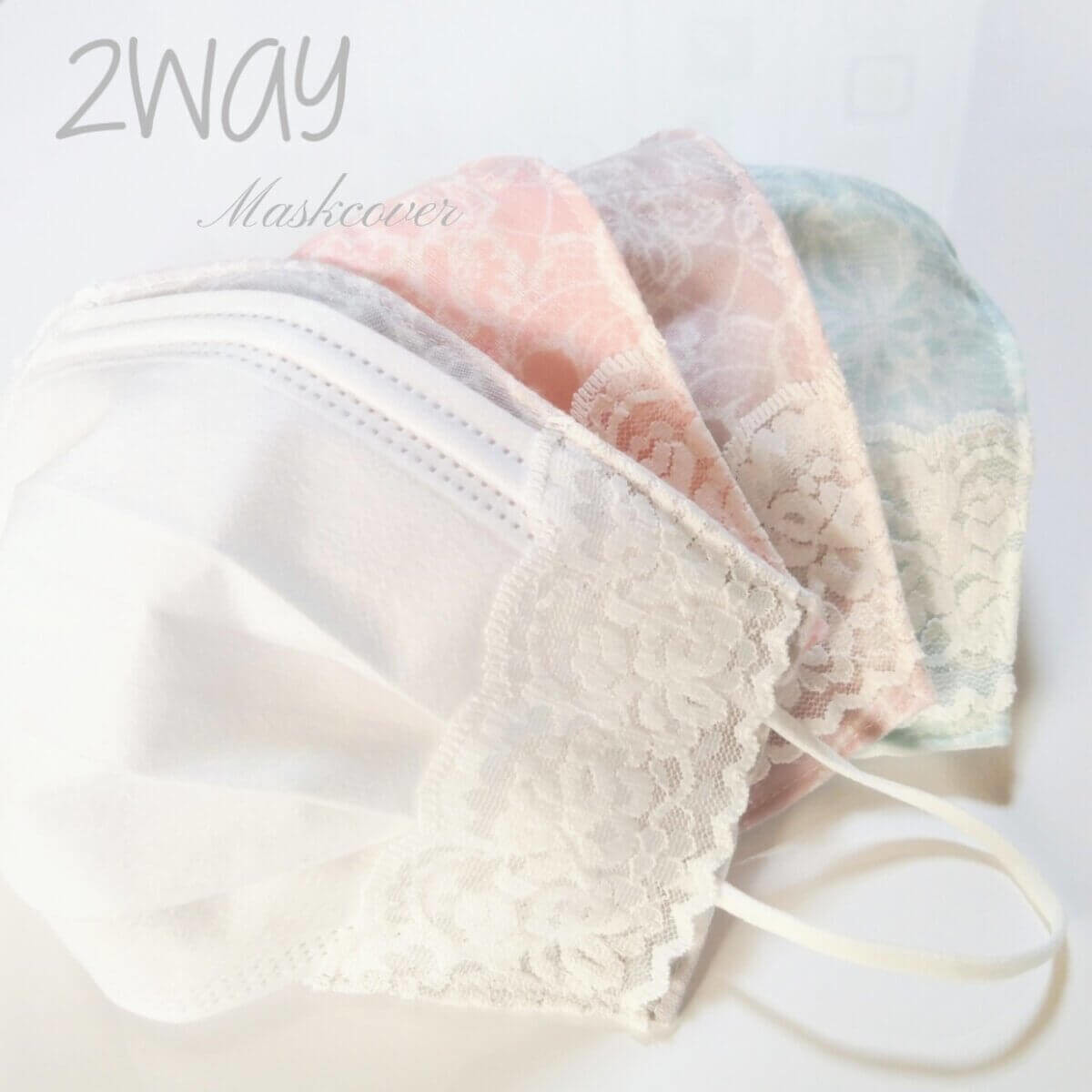 不織布マスクと布マスクの重ね付けをおしゃれにできる2wayレースリボンマスクです。