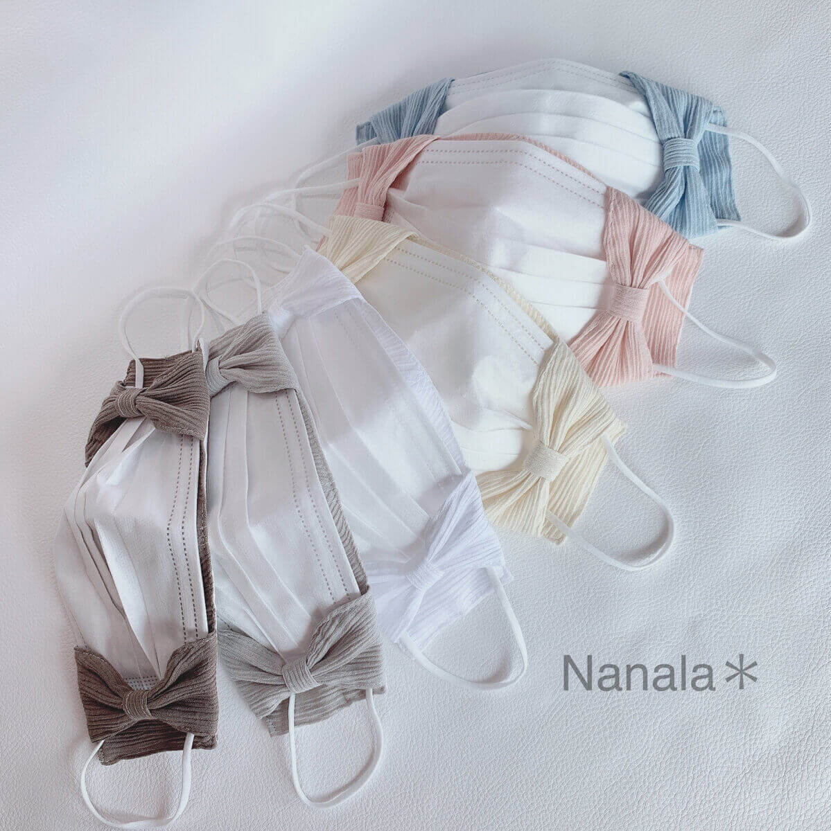 色の展開はホワイト・ピンク・紫・ブルーの春色パステルカラー。マスクも季節感がでておしゃれが楽しめますね!フォーマルなシーンでも使いこなせるおしゃれなデザイン。