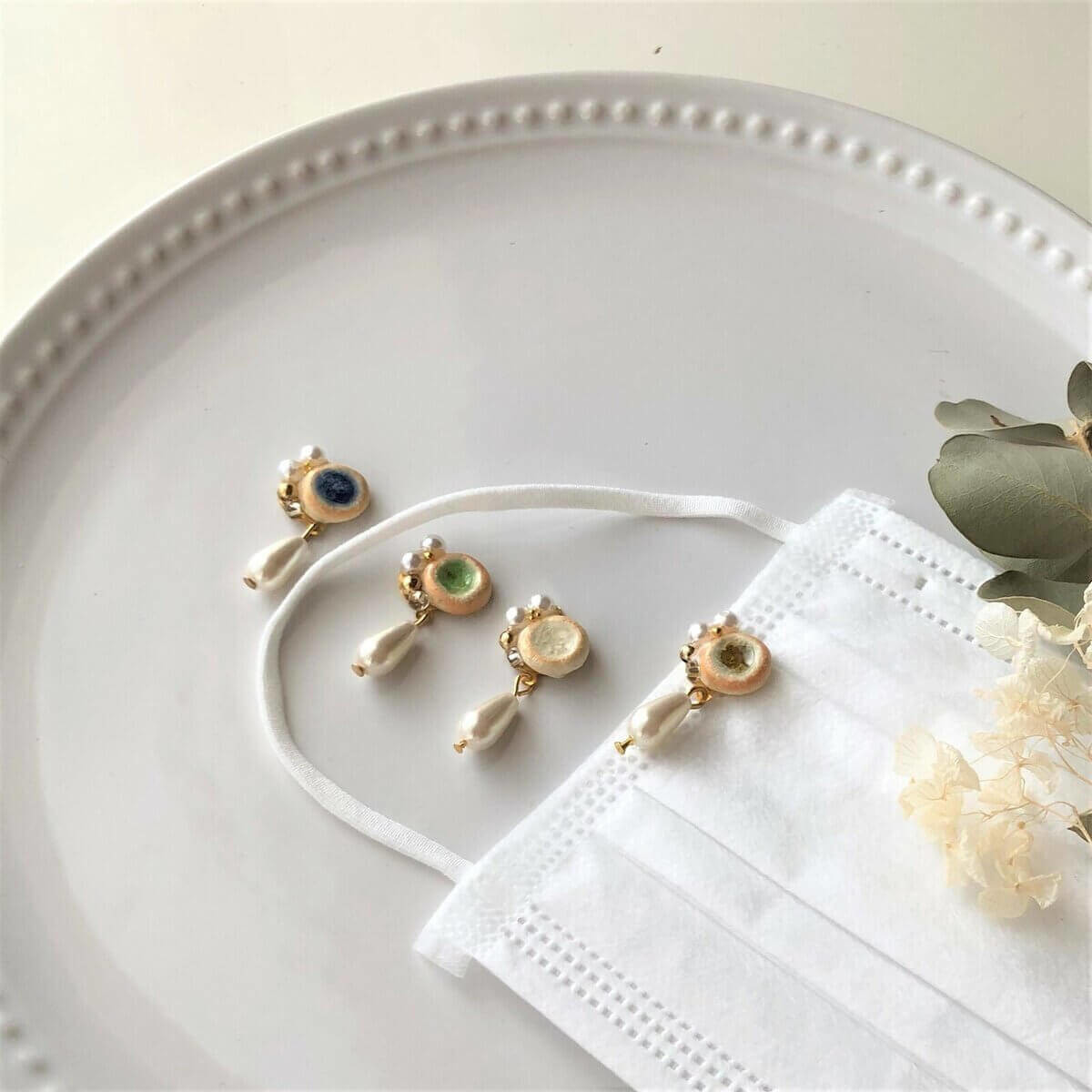 こちらのマスクチャームは信楽焼の「和」とパールやビーズの「華やかさ」を同時に楽しめる仕上がりになっています。