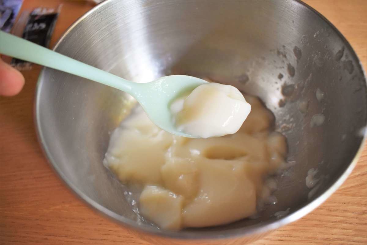 冷えていない状態だと液体のままだと思われるので、まずは冷やして固めてからボウルへ。