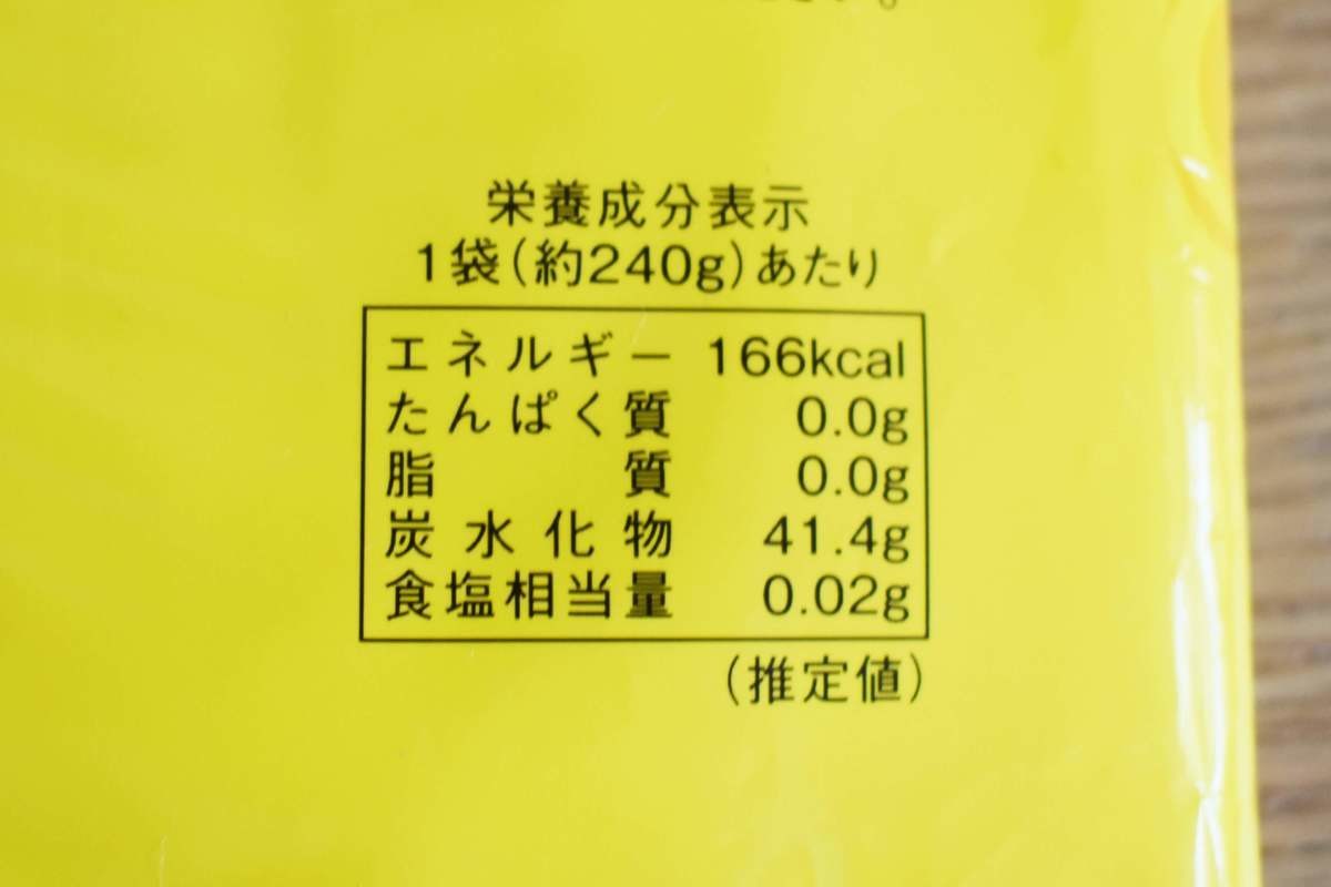 1袋全部ひとりで食べてもかなり低めですね。ダイエッターには安心です。