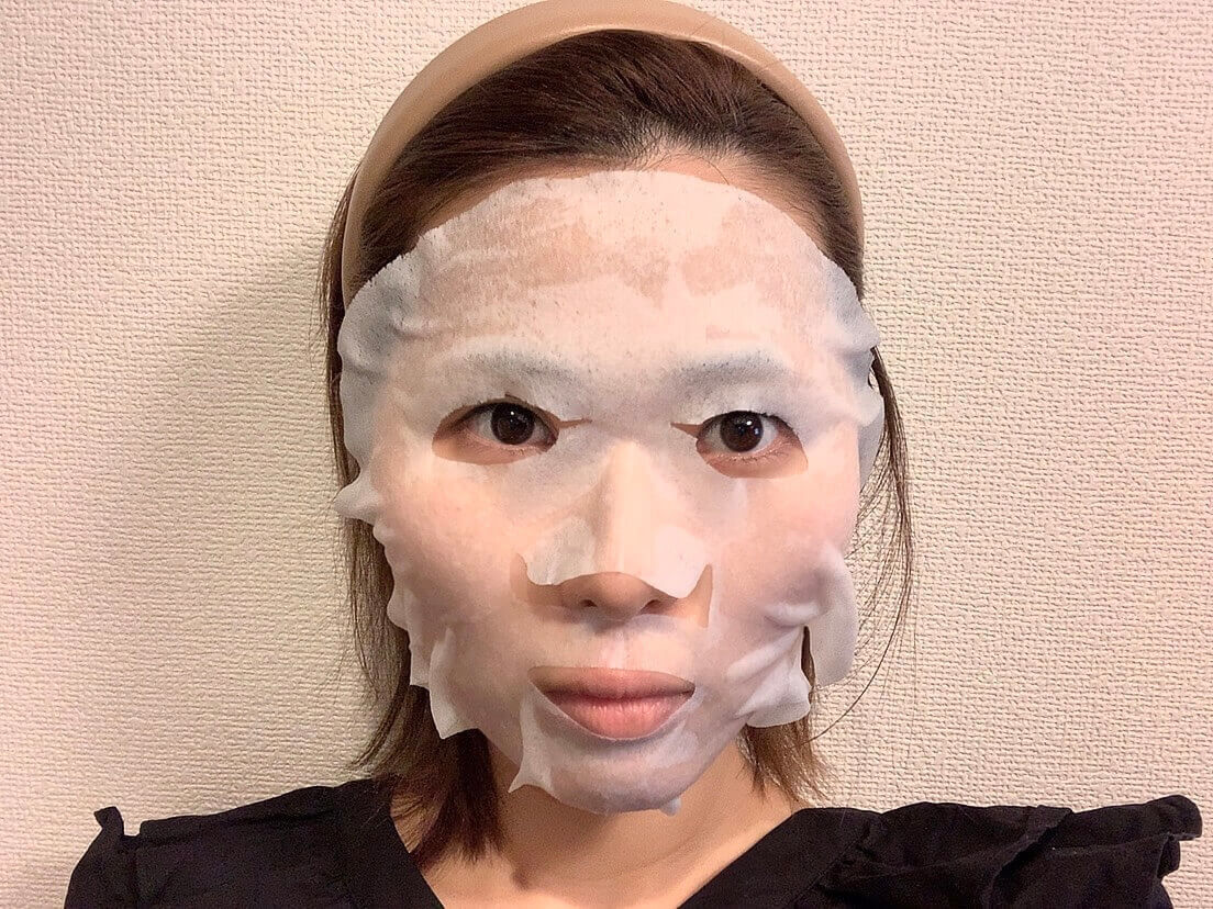 やや大きめの顔の私でも、すっぽりと覆ってくれる大きさでフェイスラインまでしっかり張り付いてくれます。