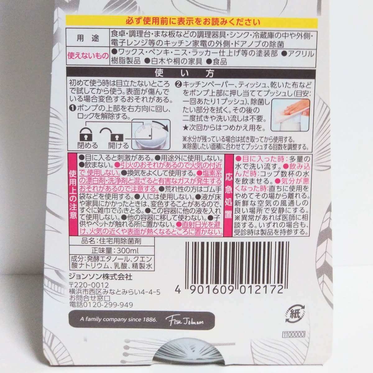 キッチンペーパー、ティッシュ、乾いた布などをポンプ上部に押し当ててプッシュし、除菌したい部分を拭く。