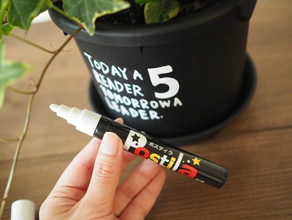 水性ですが耐水性があるので、植木鉢や自転車など屋外で雨水に濡れる物に書いてもすぐに消えてしまうことはありませんでした!