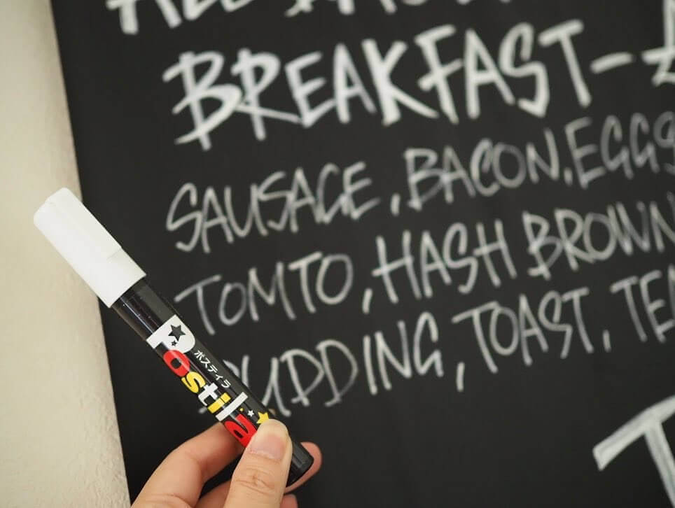 他にも、黒板シートに書くとチョークよりもきれいな発色で文字が見えやすいのでおすすめです。