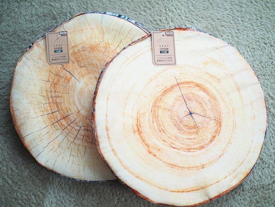 続いてご紹介するのもセリア新商品の「シートクッション切り株」です。