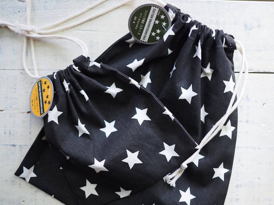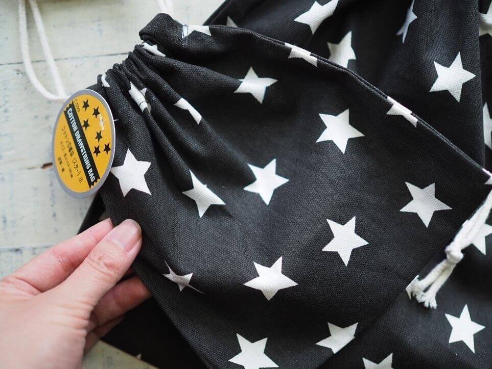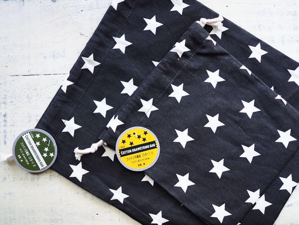 続いてご紹介するのはモノトーンの星柄がシンプルおしゃれな「コットン巾着スター」です。