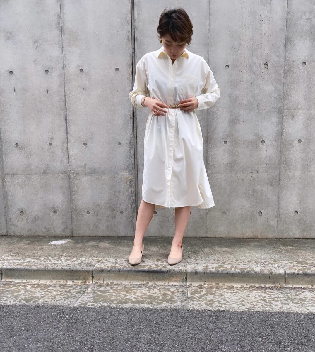 仕事に行く日は、オフィスで映えるワンピーススタイルがテッパン。ハリ感のあるワンピースは、さらっと1枚着るだけでも、カジュアルになりすぎず、仕事シーンでもじゅうぶん活躍してくれます。